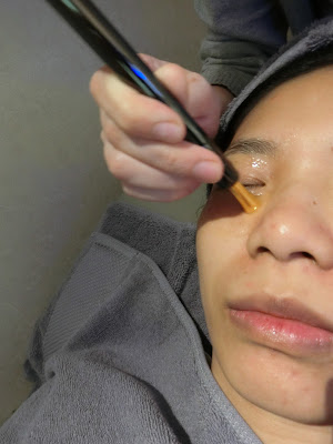 一開始美容師會先洗面,配香薰油以放鬆之作用。然後使用排毒抗氧化溶液,以獨特按摩手法,將眼部毒素排走及增加抗氧化效用。